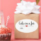 Autocollant ovale moderne "gâteau dans un pot" avec une police de caractères noir sur un arrière - plan rose vif embelli par un coeur rouge mignon. Customiser du texte.