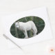 Cette photo impressionnante d'un loup blanc dans la forêt figure sur cet autocollant en forme ovale. Utilisez pour cet envoi spécial, la réservation de ferraille ou donner à votre amant préféré de loup!