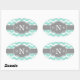 Sticker Ovale Monogramme Gris Chevron à la menthe