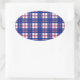 Sticker Ovale Motif Mod Plaid Rouge Blanc Bleu