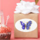 Sticker Ovale Papillon saphir à fleurs