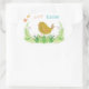 Sticker Ovale Pâques joyeuses, poulet et fleurs