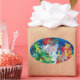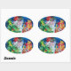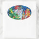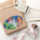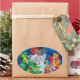 STICKER OVALE PÈRE NOËL AVEC ARBRE DE NOËL ET CADEAUX