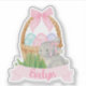 Cette adorable aquarelle design de Pâques présente un lapin de Pâques avec un panier rempli d'oeufs pastel de Pâques et attaché avec un arc en vichy rose plaid,. Personnalisez avec le nom de votre enfant.