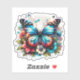 Sticker Papillon bleu et fleurs