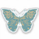 Sticker Papillon botanique turquoise et or