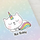 Pas aujourd'hui Unikitty Sticker - Ces jours où il est préférable de ne pas demander. Nous les avons tous et la star de notre magasin Unicorn kitty sait exactement comment faire passer le message. Laissez tout le monde voir votre humeur et votre goût funky avec notre Sticker Unikitty Not Today. "Méowical !" L'inscription sur l'autocollant peut être customisée à n'importe quelle phrase que vous désirez.