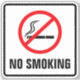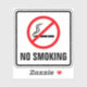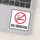 Un autocollant "non fumeur" avec une cigarette noire sous un rouge, traversé en cercle et le texte "Non fumeur" entouré d'une bordure noire. Autocollant carré avec coins arrondis.