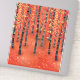 Un paysage moderne peint d'un bouleau ou d'une forêt de trembles en automne dans les tons riches de rouge, orange et jaune.
