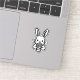 This simple black-and-white line art features a curious bunny holding a steaming cup of coffee. A clean and modern design for anyone who needs their caffeine fix and loves rabbits.