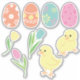 Sticker Petits poulets de Pâques, Oeufs décorés et Tulipes