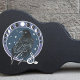 Corbeau tribal assis dans un cercle d'étoiles et de phases de lune, le tout dessiné dans un style Art nouveau sur fond de bleus et de violet