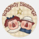 L'autocollant rond primitif de style campagnard est doté d'un style primitif et Andy avec Raggedy Blessings texte bordeaux. Sticker est accentué avec une étoile primitive or. Parfait pour toutes les occasions. Idéal pour les sacs cadeaux.