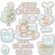 Stickers Kiss-Cut en bleu et vert avec un adorable bébé ours et arbre de Noël, éléments de Noël mignons et texte personnalisé pour un bébé garçon ou petit garçon. Personnalisez facilement tout le texte. - Kate Eden Art