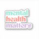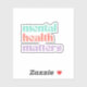 Montrez votre soutien à la sensibilisation à la santé mentale avec notre autocollant graphique esthétique qui contient le message puissant "La santé mentale compte". Présentez-le fièrement et aidez à amorcer des conversations importantes sur la santé mentale et le bien-être. Que vous soyez à la recherche d'un cadeau d'anniversaire, d'un cadeau de remise de diplômes ou simplement de vous montrer une amie, une petite amie ou une personne spéciale qui vous tient à coeur, notre autocollant personnalisé "Mental Health Matters" est un choix réfléchi et impactable qui sera certainement apprécié.