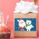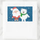 Une jolie photo de Père Noël et un bras d'ours polaire en bras, souriant, tandis que des flocons de neige tombent sur un arrière - plan bleu, est présenté sur cet autocollant de vacances. Idéal pour ces mailings spéciaux de vacances, l'artisanat, la décoration et plus encore!