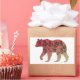 Cette conception est le contour d'un ours avec un dégradé de couleur rouge ou marron à beige et la silhouette d'un arbre à l'intérieur.