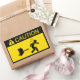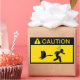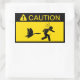 Signal de prudence jaune et noir avec une oie poursuivant une figure de bâton.