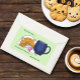 Un chat orange et blanc qui veut se réveiller car ils sont encore très fatigués et allongés à côté d'une grande tasse de café