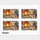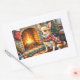 Sticker Rectangulaire Chihuahua Sitting Fireplace with Christmas Lights