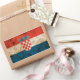 Le drapeau de la Croatie est fait pour paraître vieux et robuste. Des textures rugueuses recouvrent le drapeau, donnant à cet autocollant une sensation grincheuse. Ce drapeau croate dallé est une façon amusante et élégante de montrer son patriotisme.