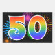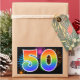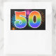 Ce design d'autocollant amusant et vibrant présente un motif coloré de feux d'artifice de célébration, ainsi que le nombre "50" avec un motif de dégradé arc-en-ciel multicolore, sur un fond de couleur noire. Des autocollants comme celui-ci pourraient être utilisés lors d'une fête célébrant le cinquantième anniversaire de quelqu'un, ou peut-être pour le cinquantième anniversaire de mariage d'un couple, ou un autre événement marquant les 50 ans.