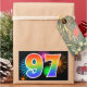 Cette conception d'autocollant amusante et vibrante présente un motif coloré de feux d'artifice de célébration, ainsi que le nombre "97" ayant un motif de dégradé multicolore comme un arc-en-ciel, sur un fond de couleur noire. Des autocollants comme celui-ci pourraient être offerts en petit cadeau lors de la célébration du quatre-vingt-dix-septième anniversaire de quelqu'un, ou peut-être pour un quatre-vingt-dix-septième anniversaire de mariage de couple, ou un autre événement 97.