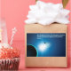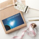 Image stylisée dans les tons bleus et blanc de la Terre et de la Lune rétroéclairée par le soleil. Une traduction anglaise de Genèse 1:4 qui disait "Dieu a vu que la lumière était bonne, et Dieu a divisé la lumière de l'obscurité" apparaît également en bleu et blanc éclatant.