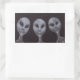 Un dessin au crayon couleur de trois ET gris Aliens contre un ciel noir étoilé orne ces autocollants !