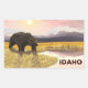 Un tableau numérique d'un ours grizzli s'approchant d'un étang tandis que le soleil descend au-dessus de montagnes lointaines. Le texte "IDAHO" est également présent.