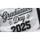 Graduation day 2025 en noir et blanc sur un arrière - plan en soie blanche, typographie élégante, Stickers à thème de fête.