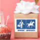 Rentre chez toi, il sera là demain. Monte à cheval et monte. Ce drôle de design montre les icônes d'un homme d'affaires et d'un cavalier à cheval.