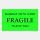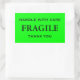 Stickers avec : Fragile. Manipuler avec soin. Merci. Texte noir sur un arrière - plan vert citron. Personnalisez avec vos informations en utilisant les modèles faciles. La couleur de police, le style de police, la taille de police et la couleur de l'arrière - plan vert citron sont personnalisables.