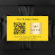 Un arrière - plan jaune vif. Personnalisez et ajoutez votre nom d'entreprise, votre propre logo d'entreprise, votre code qr à votre site Web et un texte. Texte noir.