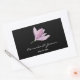 Autocollants personnalisés avec une belle couleur de fleur de magnolia violet et votre texte pour toute occasion en lettrage blanc chic sur un arrière - plan noir, parfait pour les faveurs de mariage, douche nuptiale, phoques faire-part de mariage et plus encore. OBJETS CORRESPONDANTS dans notre magasin.