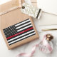 Ces autocollants arborent un mince drapeau américain rouge en l'honneur des pompiers. Un exemple de texte a un nom que vous pouvez personnaliser.