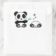 Une paire de mignons pandas de dessins animés. Le panda gauche tient un bâton en bambou en regardant le panda droit qui s'est endormi.