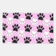 Un motif en noir et blanc d'empreintes de pattes de chien avec des effets désespérés sur un arrière - plan rose. Style dessin animé original.