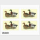 Les rouens sont de gros canards avec un motif de couleur semblable à Mallards. La tête verte brillante du drake se distingue mais les plumes crayonnées de la poule sont magnifiquement modelées.