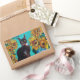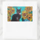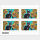 STICKER RECTANGULAIRE SOUCHES AVEC CHAT NOIR EN TURQUOISE BLEUE