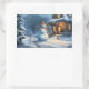 Un tableau d'hiver agréable, coloré, d'un bonhomme de neige devant une maison.