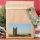 Collier photo souvenir rectangulaire avec la folie Broadway Tower sur une colline près de Broadway surplombant les Cotswolds en Angleterre, au coucher du soleil.