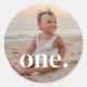 Un design moderne 1er Anniversaire avec espace pour ajouter votre propre photo et avec le mot 'one.' sur le dessus. Vous pouvez changer le mot à n'importe quoi d'autre si vous préférez !