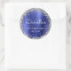 Ces élégants stickers de 30ème anniversaire (ou n'importe quelle année) présentent un arrière - plan en métal brossé bleu avec une bordure en parties scintillant argent glam. Personnalisez-les avec le nom de l'invitée d'honneur en écriture manuscrite blanche, ainsi que son anniversaire et sa date en caractère sans serif.