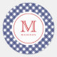 Sticker Rond 4 juillet Bleu Chèques Red Monogram Party