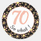 70e Anniversaire Funny 70 alors ce Motivational Classic Round Sticker. Joli motif de fleur marguerite rose et jaune sur un arrière - plan noir. Il est livré avec une citation drôle et motivationnelle - 70 alors quoi, et est parfait pour une personne avec un sens de l'humour. Vous pouvez modifier le numéro d'âge et le texte.