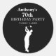 Autocollant de fête du 70e anniversaire. golfeur noir et blanc, autocollant. Personnalisez-le avec vos détails.