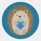 Sticker Rond Adorable Hérisson embrassant un Coeur Bleu