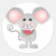 Sticker Rond adorable souris grise tenant de la pastèque