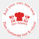 Charmante décoration rouge et blanche avec casquette (toque), couteau, fourchette et cuillère, et les mots "bon appétit".